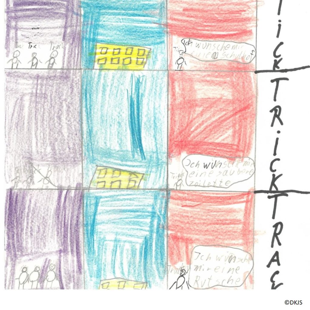 Im Rahmen des Workshops Comic beim Schüler:innen-Kongress So sieht’s aus: Unser Blick auf Ganztagsschule! haben die Kinder aus der 3. und 4. Klasse verschiedene Techniken kennengelernt, eine Geschichte grafisch zu gestalten.