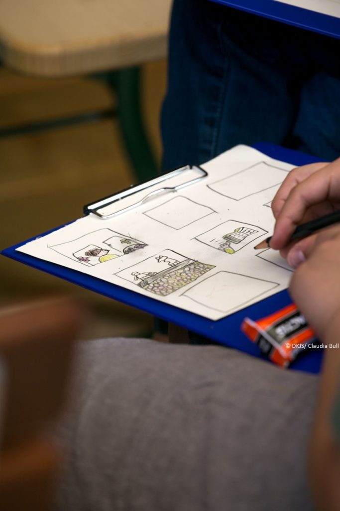 - Diese Illustrationen zum Thema „Gestalten“ wurden im Workshop Comics entwickelt.