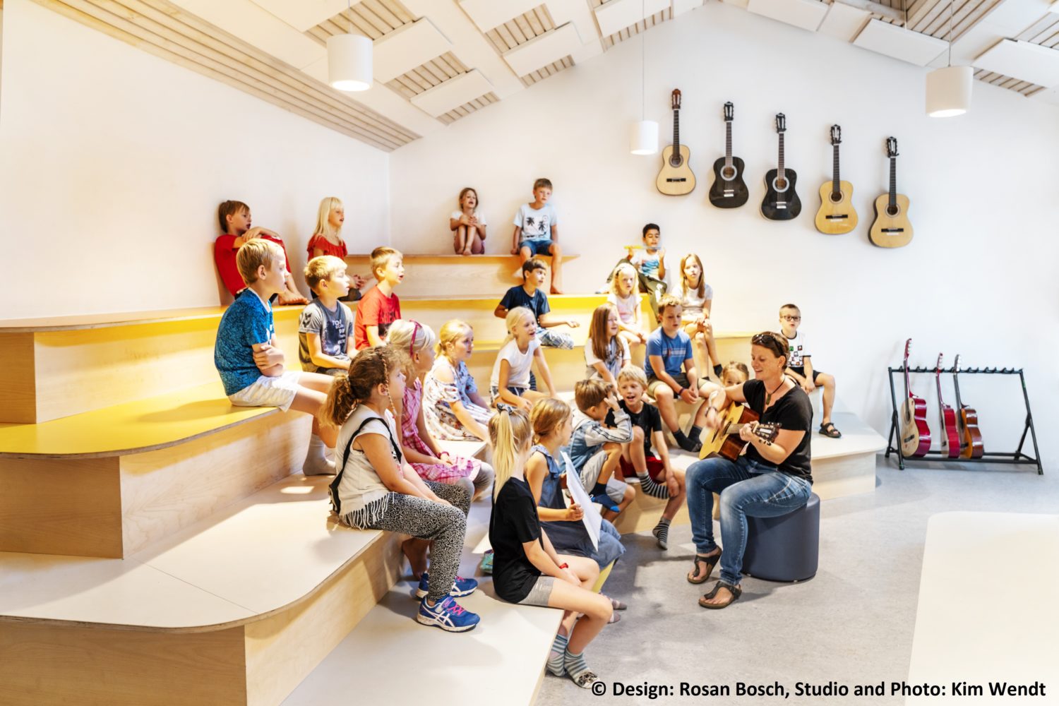 - Ein besonderes Beispiel zu dem Bildungspotenzial der Gestaltung von Lernräumen bietet die „Grundschule der Künste“ der UdK: Die Räume wurden in Kooperation mit Künstler:innen konzipiert und gestaltet. Trotz dunklem Erdgeschoss mit vergitterten Fenstern entstanden beeindruckende Lernräume, wie eine Bilderbuchwerkstatt zum Lesen, Ruhe finden und stillem Arbeiten, ein Studio zur Präsentation mit einer digital-analog-Tafel sowie ein Atelier und eine Forschungswerkstatt. Wenn Sie auf den Bilder nach rechts und links klicken, können Sie die vielfältige Flexibilität der Raumlösungen entdecken: Räume – Universität der Künste Berlin (udk-berlin.de).